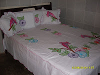 COLCHA CASAL BORDADA COM APLICAÇÃO DE FLORES.
